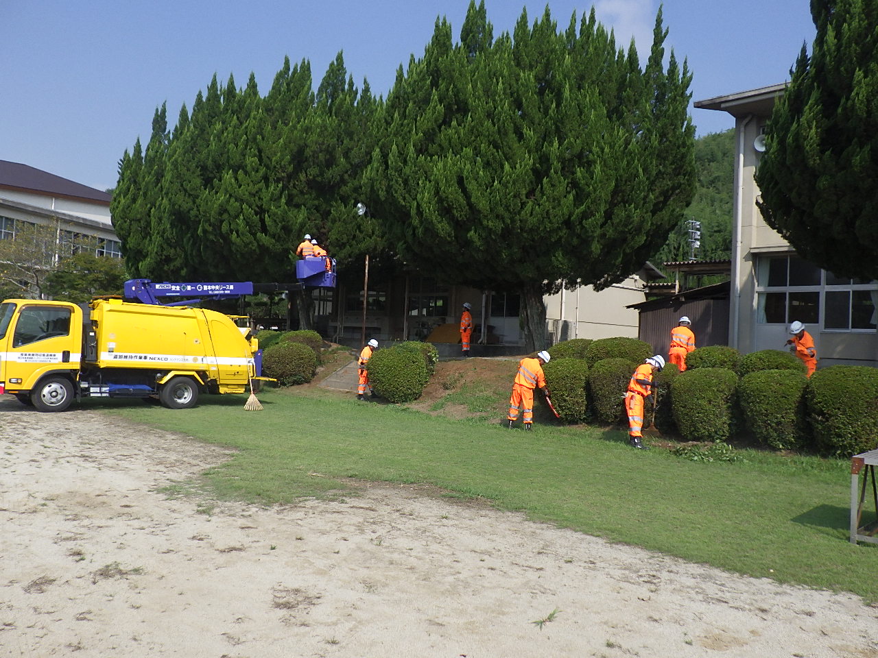 植木町内中学校の樹木剪定や草刈りを行いました。